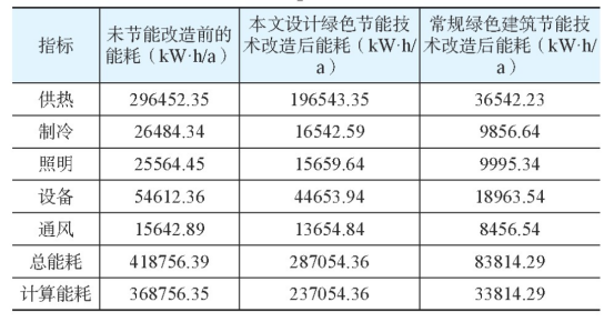 分別使用本文設計的被動式低能耗綠色建筑節(jié)能技術和基于專家評分的常規(guī)綠色節(jié)能技術改造改造后能耗對比結(jié)果如表1所示。