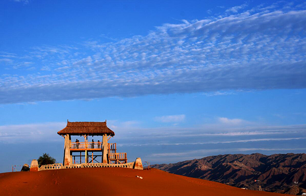 特殊的地理環(huán)境孕育了豐富的旅游資源,在這里,可以看到極具歷史積淀意義的4公里長的明代古長城遺址的宏偉景觀;可以站在湖畔觀賞著多達(dá)15種的沙漠生態(tài)魚和136種鳥類,其中黑鸛、大天鵝、金雕分別屬于國家一、二級保護(hù)動(dòng)物;可以在水上樂園與湖水親近;可以在遼闊的沙漠草原中縱情馳騁、在金沙島紫色的花海中徜徉;可以在永安寺里尋找片刻的寧靜,在五彩池畔與荷花仙子心靈神匯。騰格里湖沙漠濕地旅游區(qū)溫泉猶如沙漠里的藍(lán)色水晶,如詩如畫的旖旎風(fēng)光,看著格外悅目。